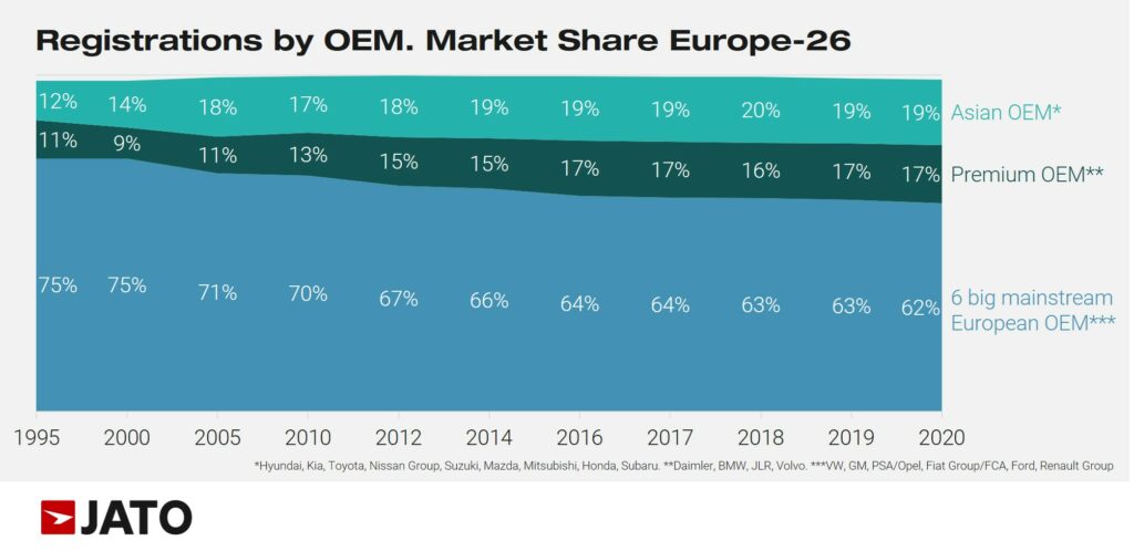 Some OEMs including Volkswagen Group, BMW and Daimler, and Asian brands like Hyundai-Kia and Toyota, have capitalizes on the SUV boom, increasing their market share with new products and powertrains while maintaining their position across the traditional segments.