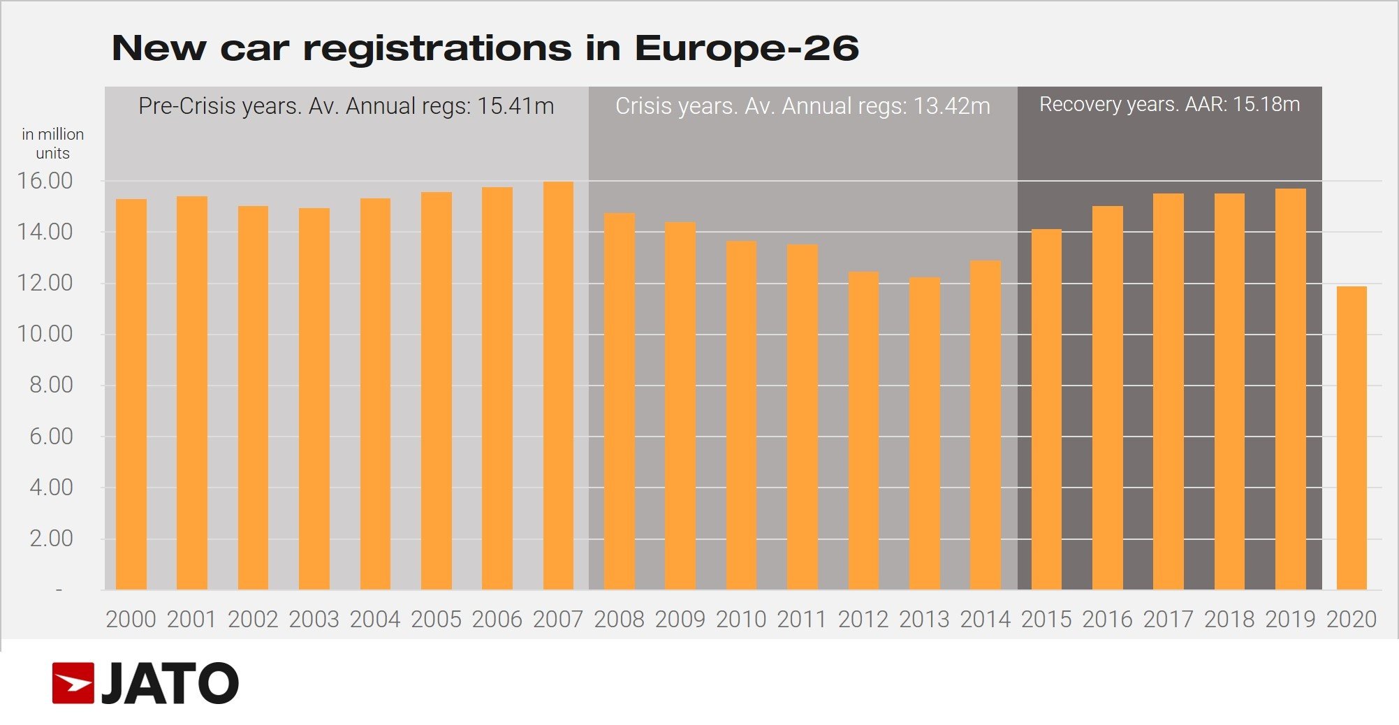Between 2000 to 2007, new passenger car registrations remained within the range of 15-16 million units. In the wake of the financial crisis however, the average from 2008 to 2016 fell to just 13.7 million units. After a period of recovery, registrations fluctuated between 15.5 and 15.7 million units per year until the COVID-19 pandemic took hold last year. Looking to today, the market has failed to grow beyond the levels recorded 20 years ago – in fact, between 1991 and 2019 it only increased by 11%.