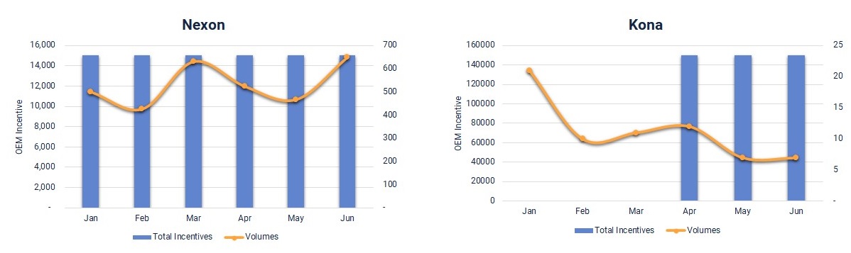Incentives on electric vehicles are currently twofold – OEM and Government subsidies. OEM incentives have remained consistent for market leader Nexon, where as Hyundai has recently introduced incentives up to 1.5L on the Kona electric.